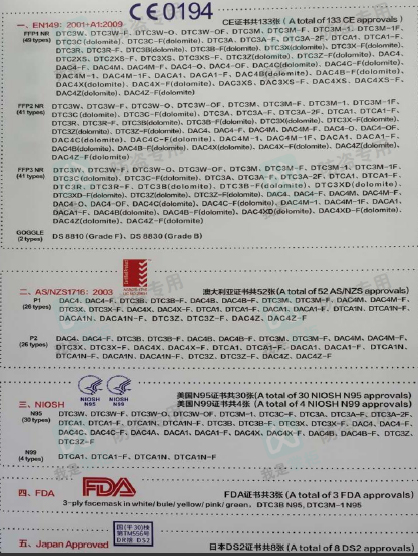 NIOSH N95, CE0194,FDA,ISO9001, ISO13485 |